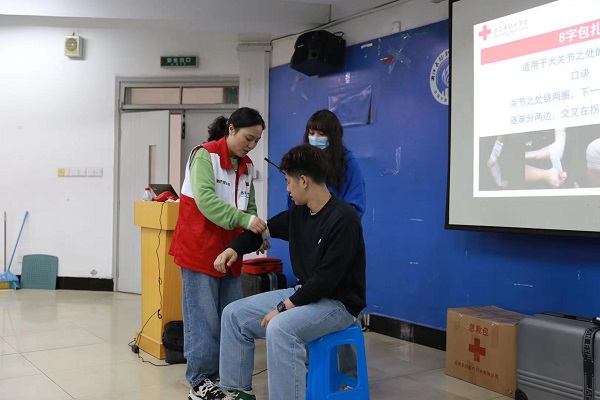 培训过程中,从实际案例入手,重点围绕心肺复苏、创伤救护、常见急症等内容,通过多媒体课件以及现场演示等多种形式,由浅入深、通俗易懂地为学院们讲解各种现场急救技能的注意事项和操作要领。