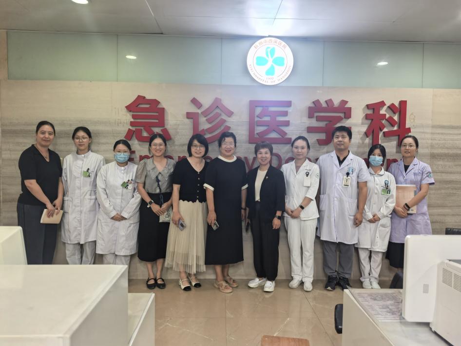 会议结束后,在李儿的陪同下,祖淑梅一行前往急诊科和消化内科病区,亲切看望正在该院实习的2023级护理专业学生。祖淑梅关切询问同学们对倒班安排的适应情况、实际操作中的技能难点以及日常生活需求;应佳盈叮嘱大家要勤于记录和反思典型案例、重视操作细节的复盘与提升;李儿也鼓励同学们主动提问、大胆实践。