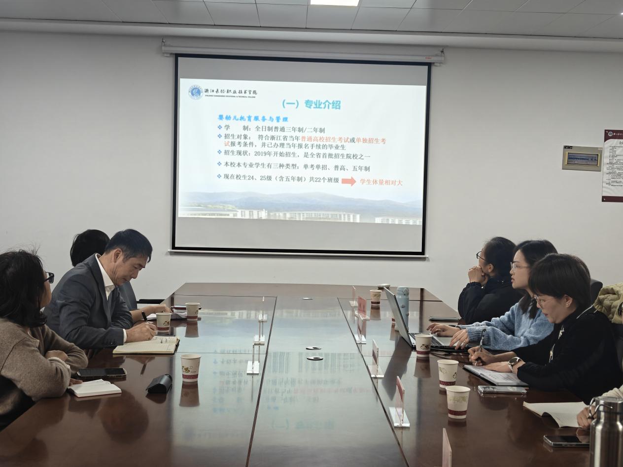 座谈会上,葛玲妹详细介绍了我校婴幼儿托育服务与管理专业的发展历程、课程设置及人才培养定位,重点阐述了专业在适配行业需求、强化实践教学邓方面的建设成果。居星耀介绍了湖州市托育综合服务中心的创办背景、发展概况及区域托育服务布局规划。
