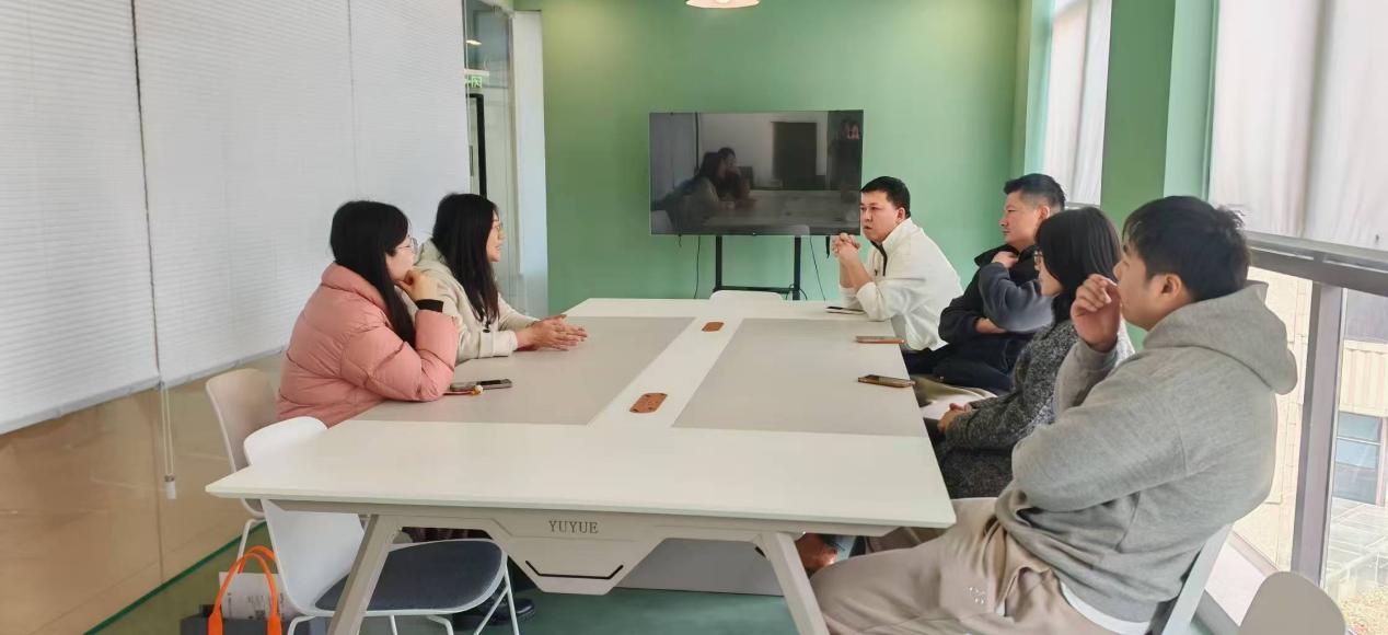 随后,教师团队前往汇峰国际跨境电商产业园,与园区经理陶秒燕举行座谈。陶秒燕介绍了产业园运营情况、发展现状及行业整体态势。她表示,当前国际贸易行业已进入精耕细作阶段,园区内企业对复合型外贸人才的需求日益迫切,并明确表达了开展校企合作的强烈意愿,希望通过共建实习实训基地、联合培养人才等方式,实现校企资源共享、互利共赢。教师团队企业对专业建设的意见建议,为进一步深化校企合作、拓宽学生就业渠道筑牢基础。